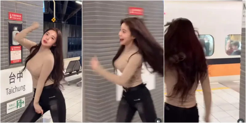 李多慧肉色緊身裝熱舞!高鐵月台忘情搖擺